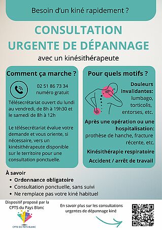 Pour améliorer l'accès aux soins urgents non vitaux, la CPTS du Pays Blanc déploie un service de consultation urgente de dépannage. Ce dispositif permet aux habitants d’obtenir un rendez-vous rapide, lorsqu’un problème de santé nécessite une prise en charge sans délai.
